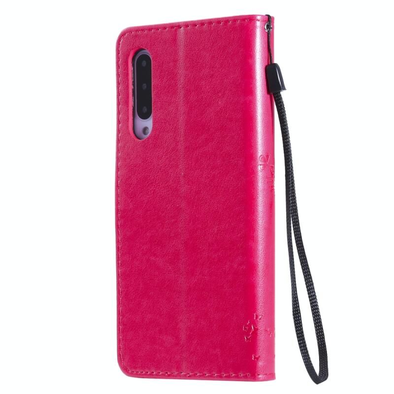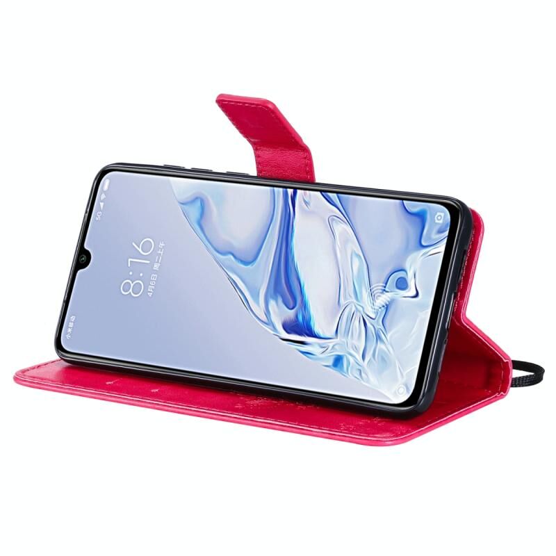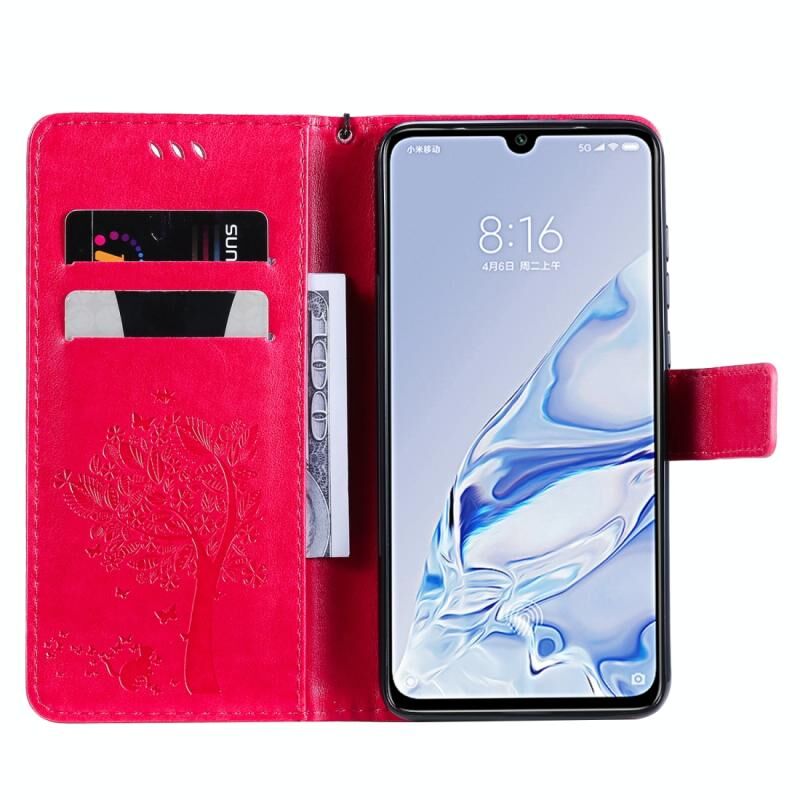 Θήκη για Xiaomi Mi 9 Pro με σχέδιο Δέντρου & Γάτας, εκτύπωση με πίεση, οριζόντια αναδίπλωση, από δερματίνη PU με βάση στήριξης & υποδοχές καρτών & πορτοφόλι & κορδόνι (ρόδινο)