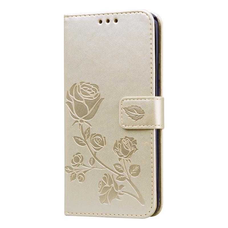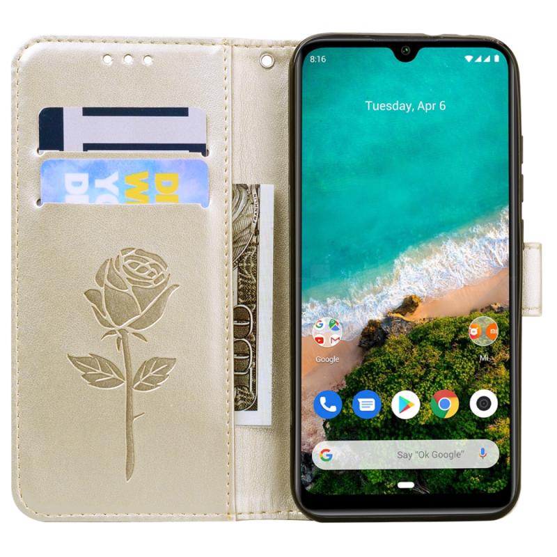 Θήκη για Xiaomi Mi A3 Rose Embossed, Οριζόντια, Δερμάτινη PU με Στήριξη & Θήκες Καρτών & Πορτοφόλι (Χρυσό)
