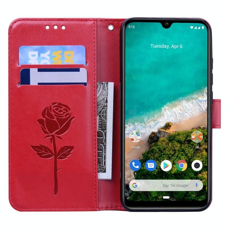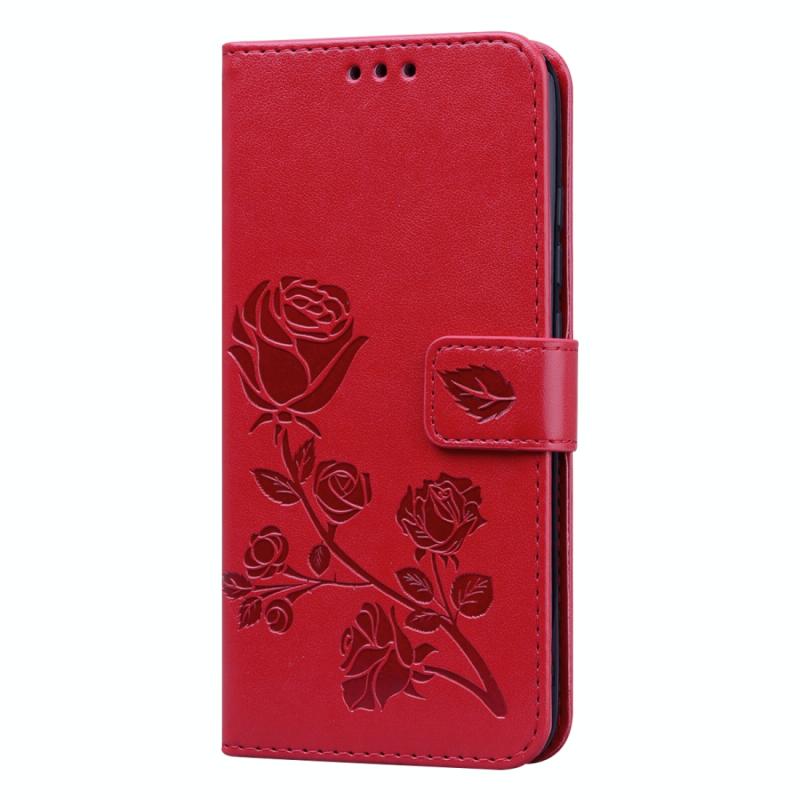 Θήκη για Xiaomi Mi A3 Rose Embossed, Οριζόντια, Δερμάτινη PU με Στήριξη & Θήκες Καρτών & Πορτοφόλι (Κόκκινο)
