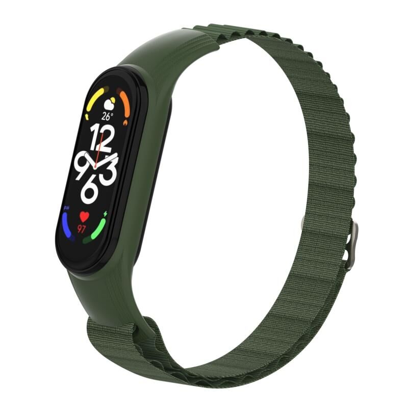 Για Xiaomi Mi Band 3 / 4 / 5 / 6 / 7, Ιμάντας ρολογιού Alpine Loop με 9 κουμπώματα, Ρυθμιζόμενος (Σκούρο Πράσινο)