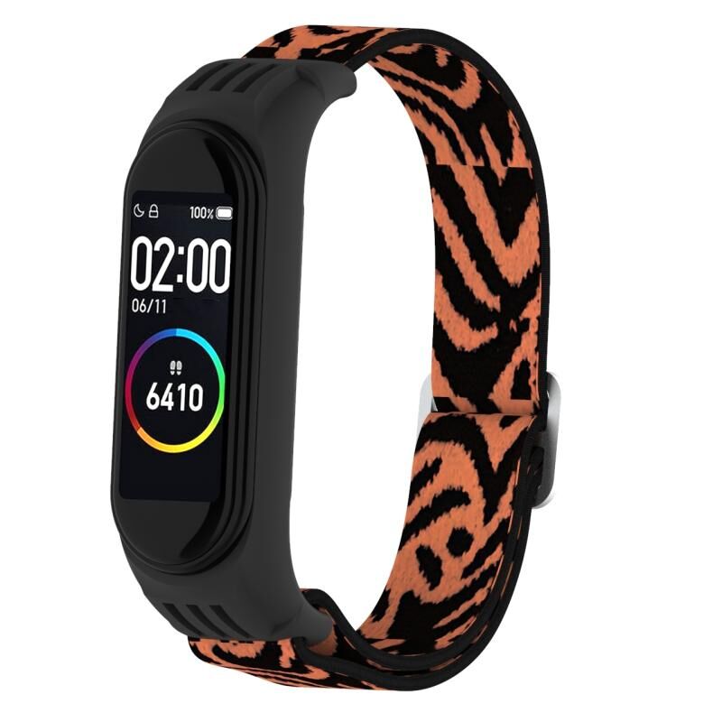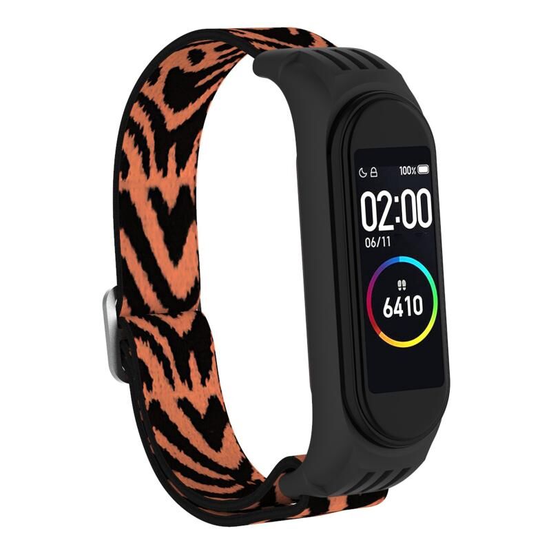 For Xiaomi Mi Band 3 / 4 / 5 Twill 8-shaped Buckle Elastic Watch Band(Flower Leopard)