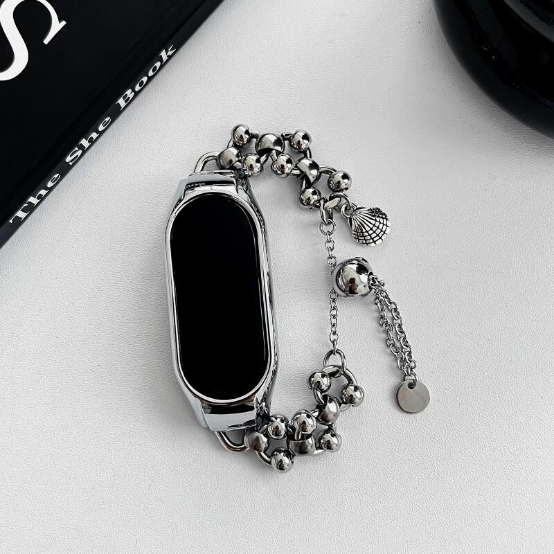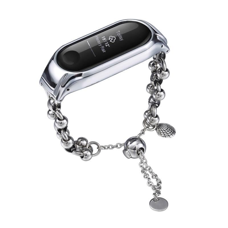 Για Xiaomi Mi Band 3 / 4 Βραχιόλι με χάντρες Μεταλλικό λουράκι ρολογιού (Ασημί+Διπλή χάντρα)