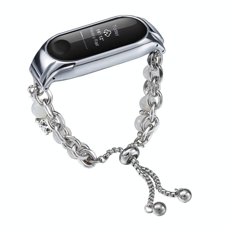 Για το Xiaomi Mi Band 3 / 4 Κρυστάλλινη ζώνη ρολογιού με χάντρες από όνυχα (ασημί + λεοπάρδαλη)