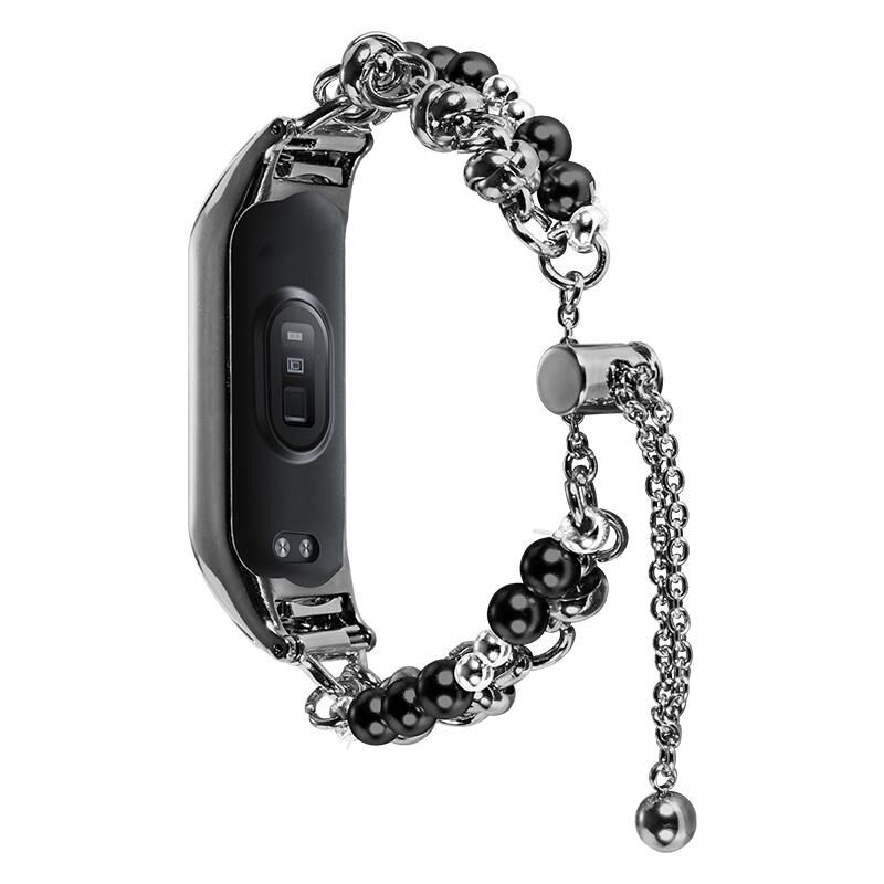 Για Xiaomi Mi Band 3 / 4 Διπλό Σχοινί από Μαργαριτάρια και Μεταλλικό Λουρί Ρολογιού (Μαύρο)