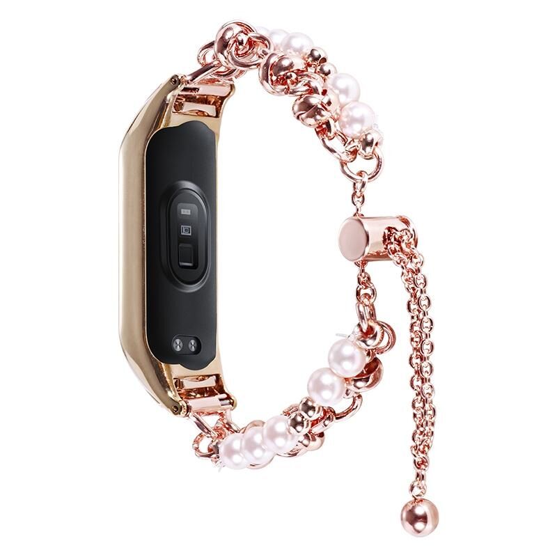 Για Xiaomi Mi Band 3 / 4 Διπλό Σχοινί από Μαργαριτάρια και Μεταλλικό Λουρί Ρολογιού (Μαύρο)