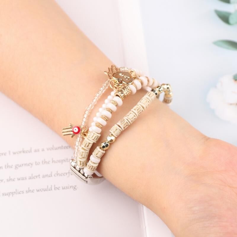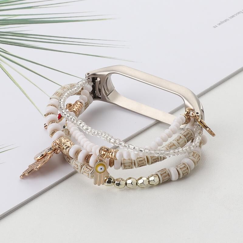 For Xiaomi Mi Band 3 & 4 Mori Style Beaded Bracelet Watch Band(White)