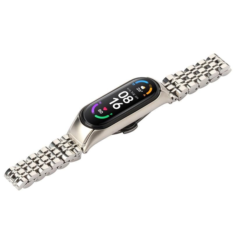 For Xiaomi Mi Band 4 / 3 Seven-beads Stainless Steel Watch Band(Silver)