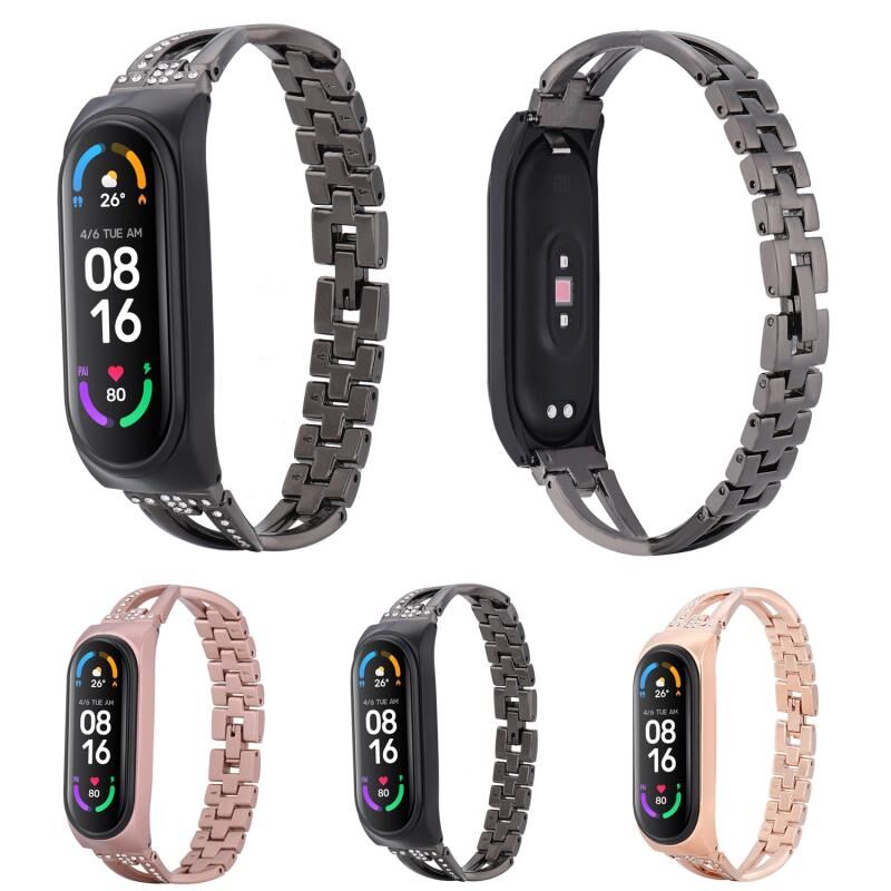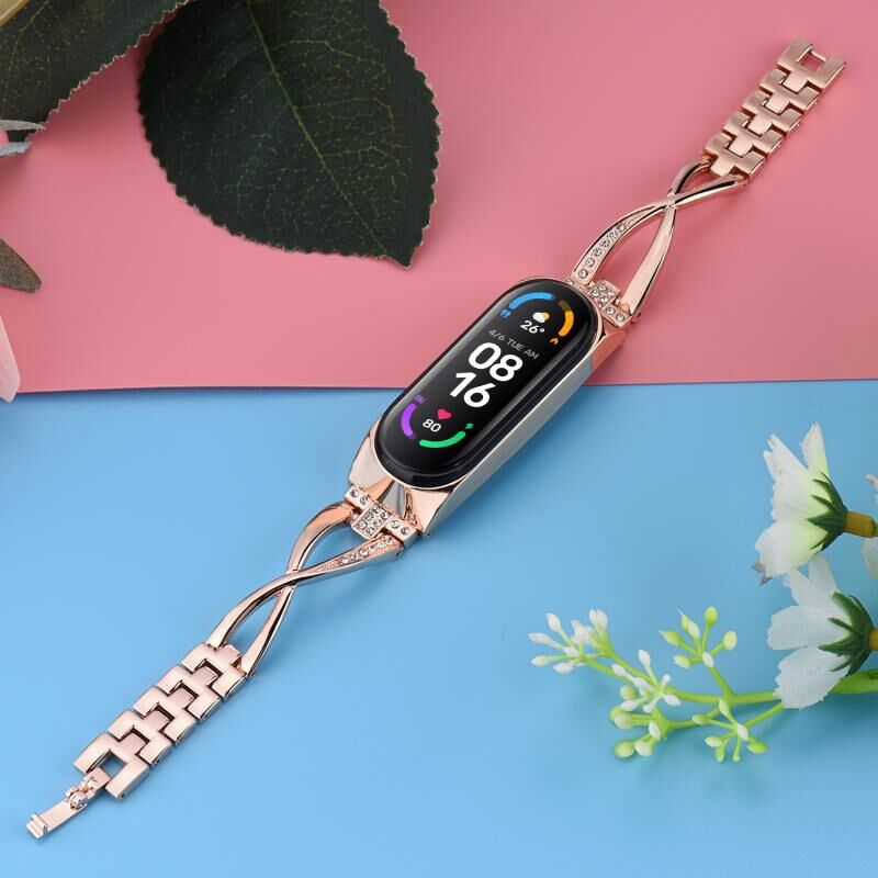 For Xiaomi Mi Band 4 / 3 X-shaped Diamond Alloy Watch Band(Rose Gold)