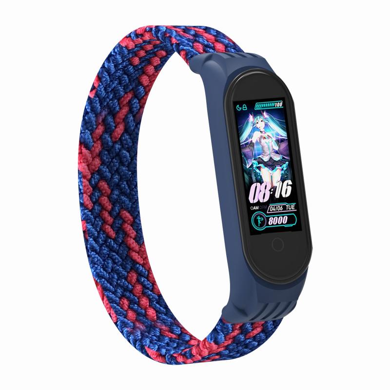 Για Xiaomi Mi Band 5 / 4 / 3 / Huami Μονόστροφη πλεκτή κλωστή + Λουράκι ρολογιού από TPU, Μέγεθος: L (Ροζ)
