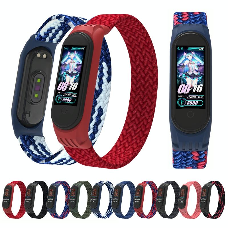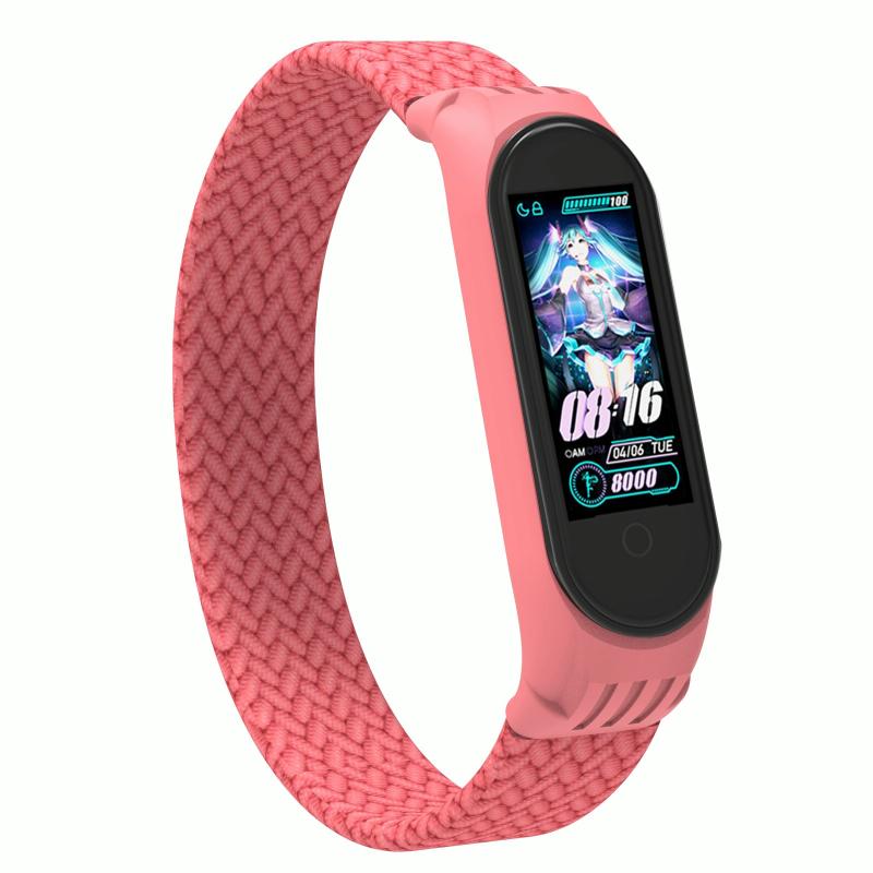Για Xiaomi Mi Band 5 / 4 / 3 / Huami Μονόστροφη πλεκτή κλωστή + Λουράκι ρολογιού από TPU, Μέγεθος: L (Ροζ)