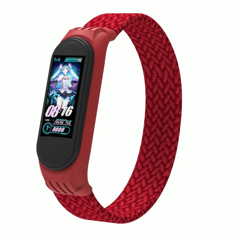 Για Xiaomi Mi Band 5 / 4 / 3 / Huami Μονόστροφη πλεκτή κλωστή + Λουράκι ρολογιού από TPU, Μέγεθος: L (Ροζ)