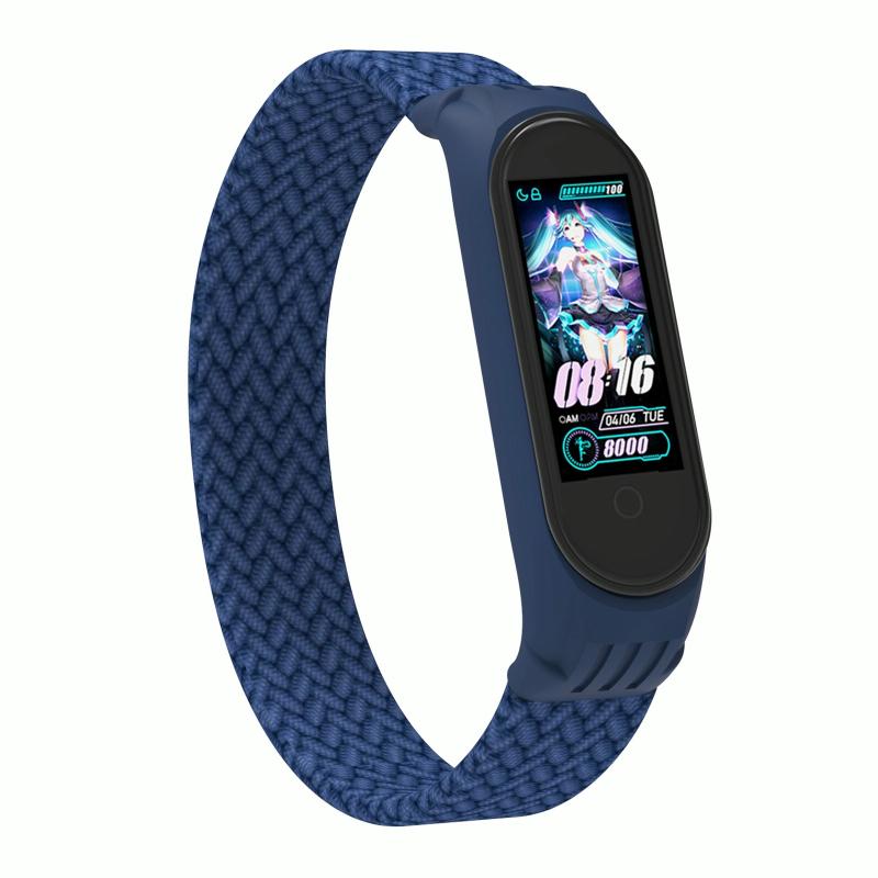Για Xiaomi Mi Band 5 / 4 / 3 / Huami Μονόστροφη πλεκτή κλωστή + Λουράκι ρολογιού TPU, Μέγεθος: M (Ροζ)