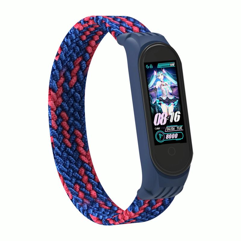 Για Xiaomi Mi Band 5 / 4 / 3 / Huami Μονόστροφη πλεκτή κλωστή + Λουράκι ρολογιού TPU, Μέγεθος: S (Ροζ)