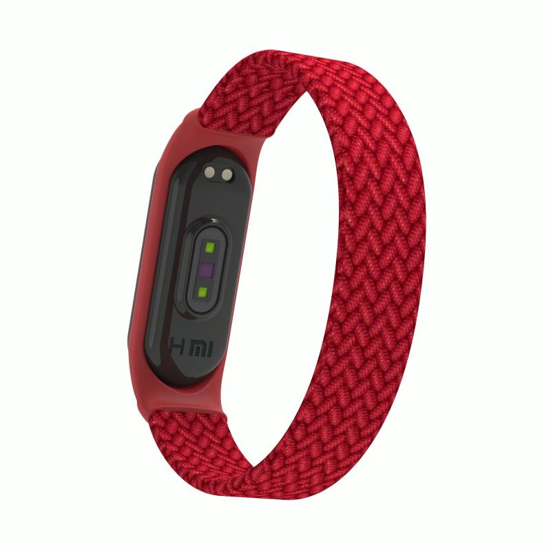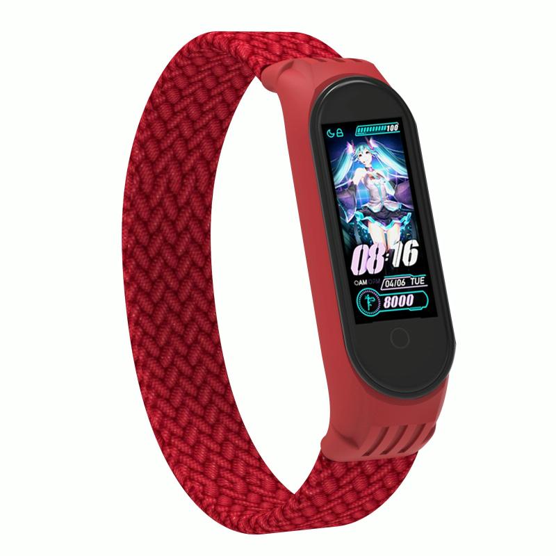 Για Xiaomi Mi Band 5 / 4 / 3 / Huami Μονόστροφη πλεκτή κλωστή + Λουράκι ρολογιού TPU, Μέγεθος: S (Ροζ)