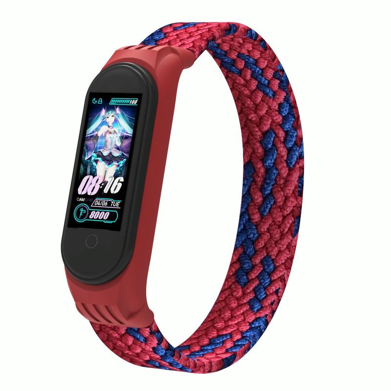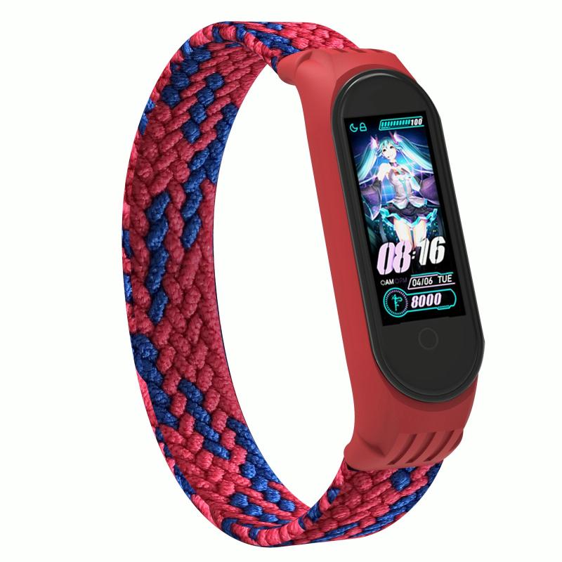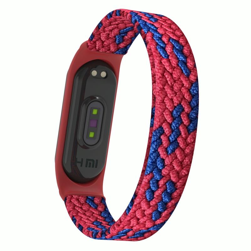 Για Xiaomi Mi Band 5 / 4 / 3 / Huami Μονόστροφη πλεκτή κλωστή + Λουράκι ρολογιού TPU, Μέγεθος: S (Ροζ)