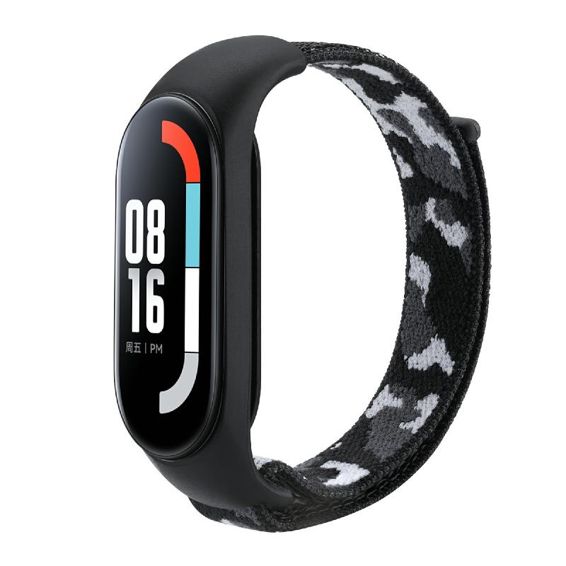 For Xiaomi Mi Band 5/6/7 Nylon Loop Integrated Camo Woven Strap(Black Camouflage)