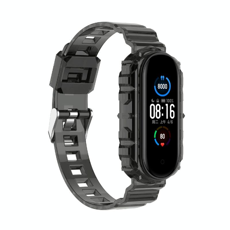 For Xiaomi Mi Band 5/6/7 Universal TPU Integrated Watch Band(Transparent Black)