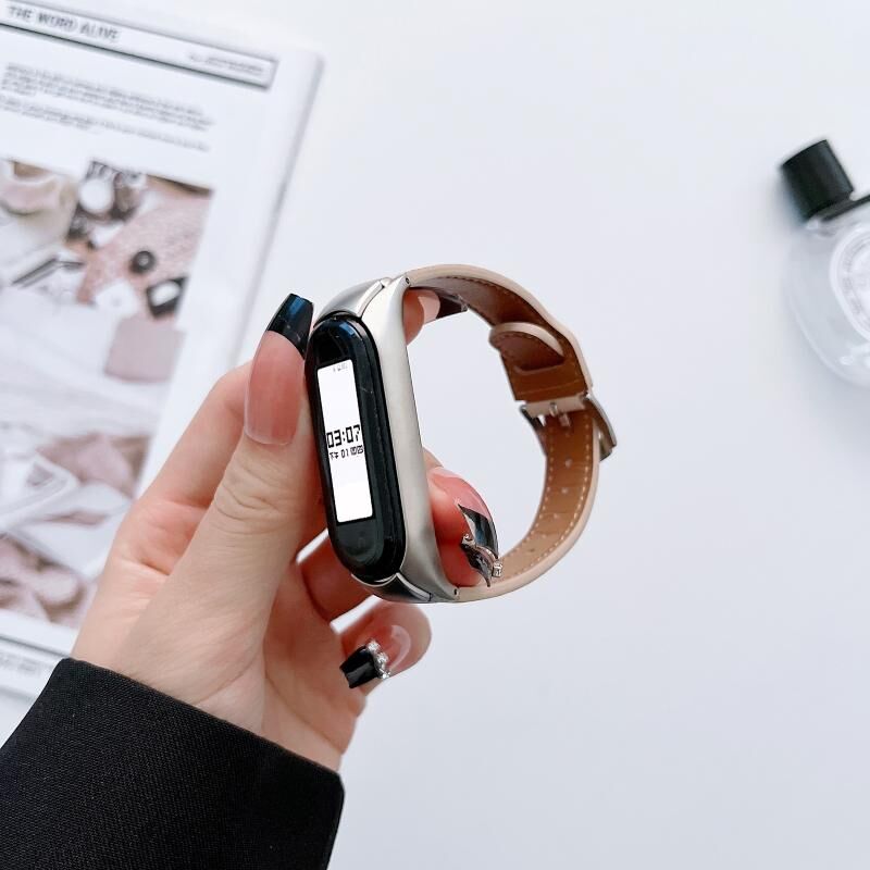 Για Xiaomi Mi Band 5 / 6 Δερμάτινο Λουράκι Ρολογιού με 8 Κλιπ (Μπλε)