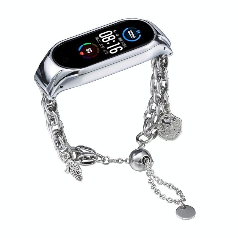 Για Xiaomi Mi Band 5 / 6 Βραχιόλι με χάντρες Μεταλλική ζώνη ρολογιού (Ασημί + καλαμπόκι)