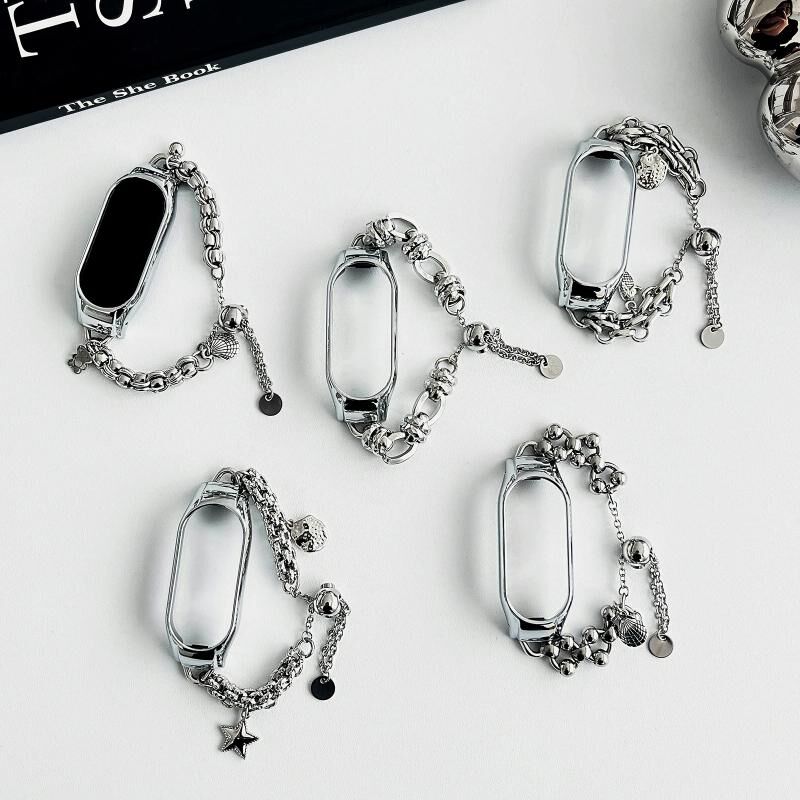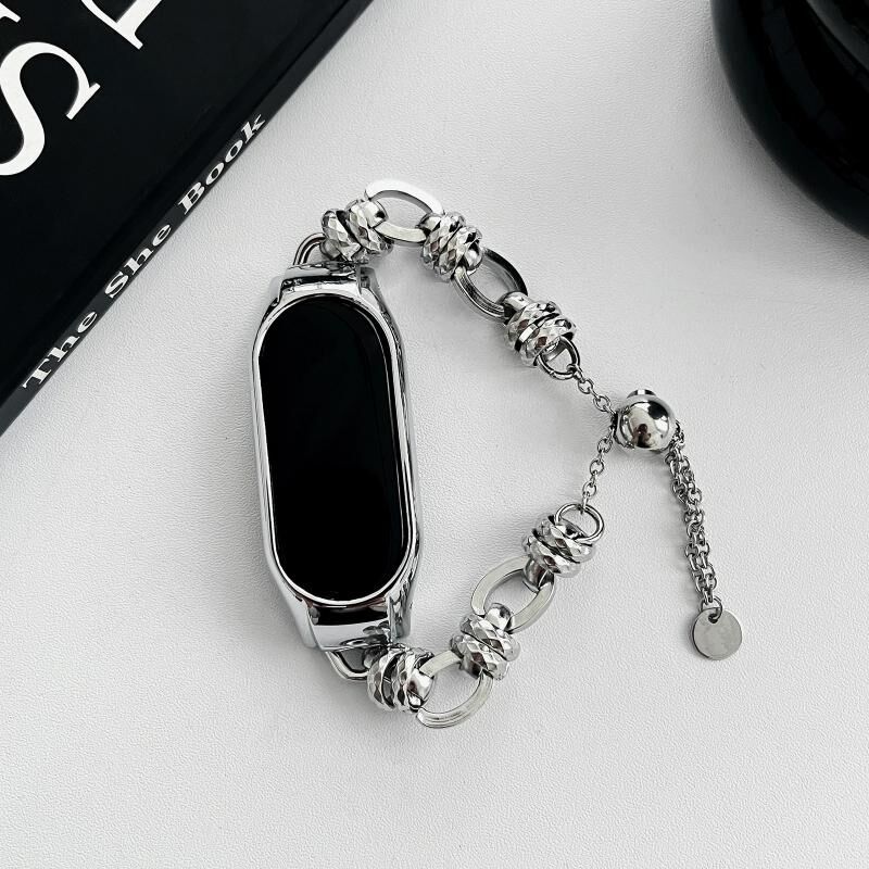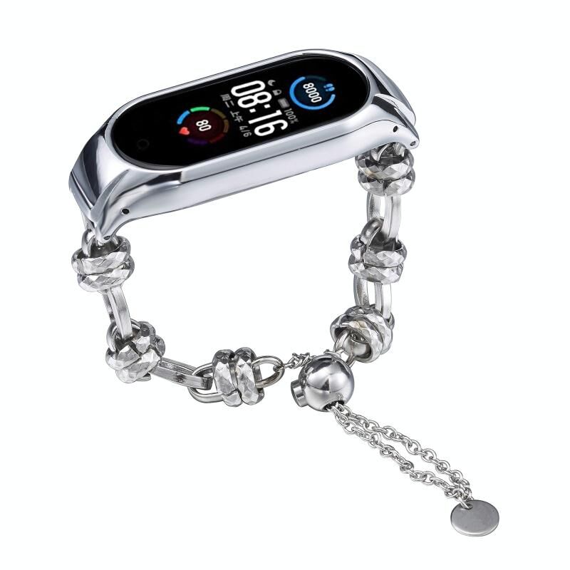 Για Xiaomi Mi Band 5 / 6 Βραχιόλι με χάντρες Μεταλλική ζώνη ρολογιού (Ασημί + διπλό δαχτυλίδι)