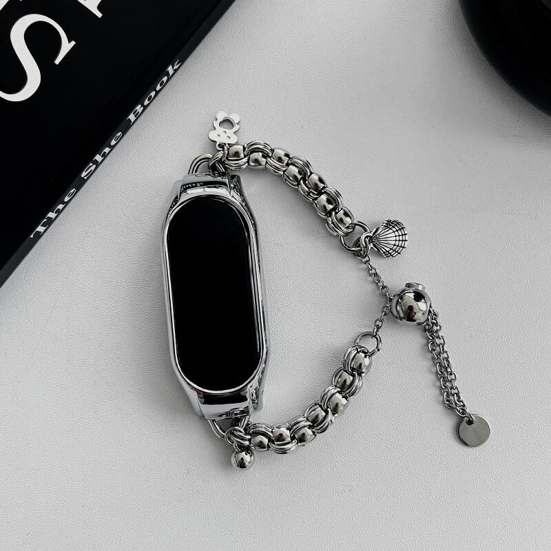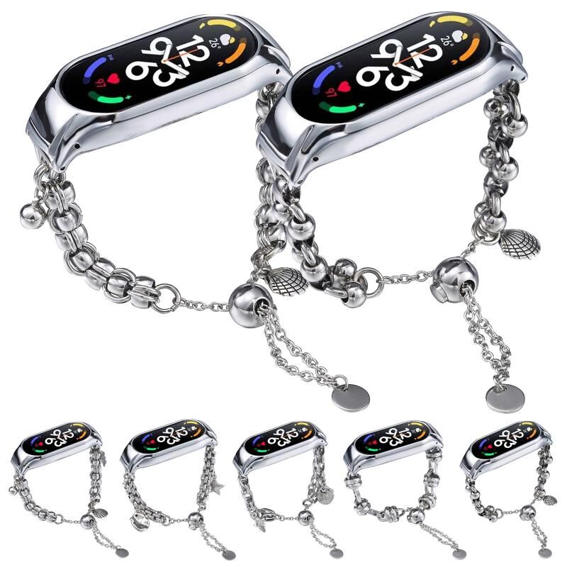 Για Xiaomi Mi Band 5 / 6 Βραχιόλι με χάντρες Μεταλλικό λουράκι ρολογιού (Ασημί + μονή χάντρα)