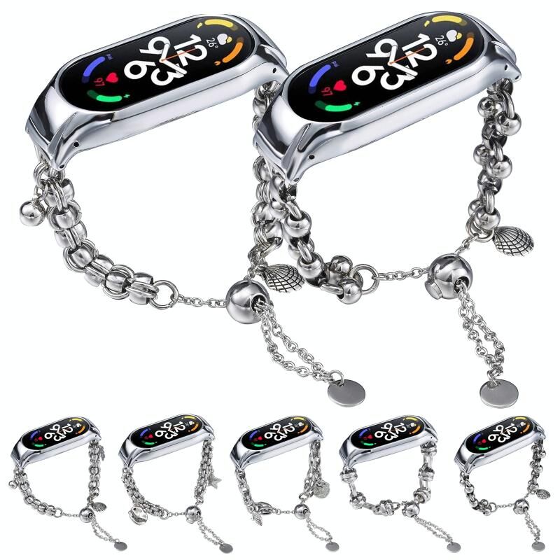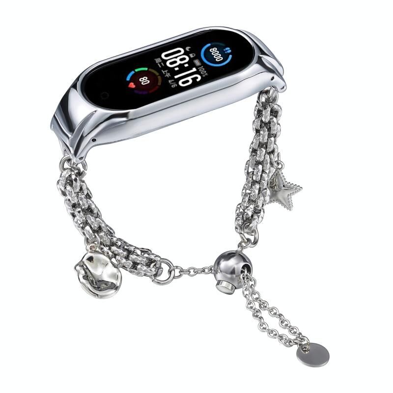 Για Xiaomi Mi Band 5 / 6 Χάντρες βραχιόλι μεταλλική ζώνη ρολογιού (ασημί + αστέρι)