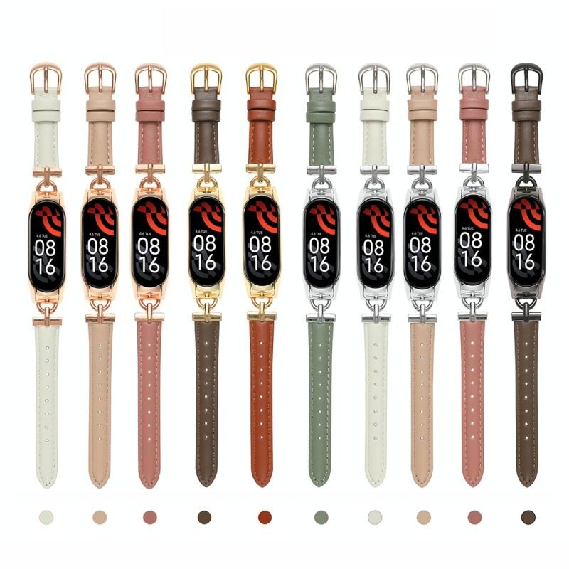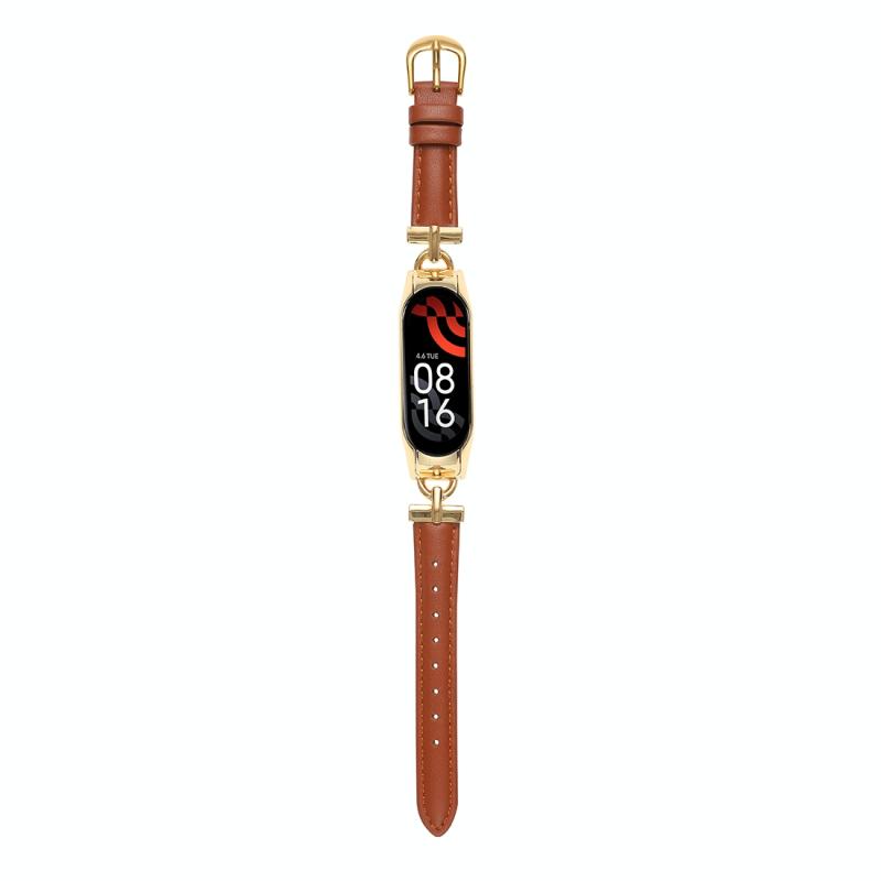 Για Xiaomi Mi Band 5 / 6 Δερμάτινο + Ατσάλινο Λουράκι Ρολογιού σε σχήμα D (Χρυσοκαφέ)