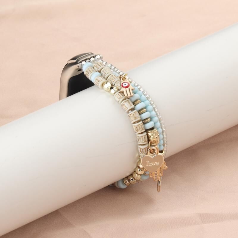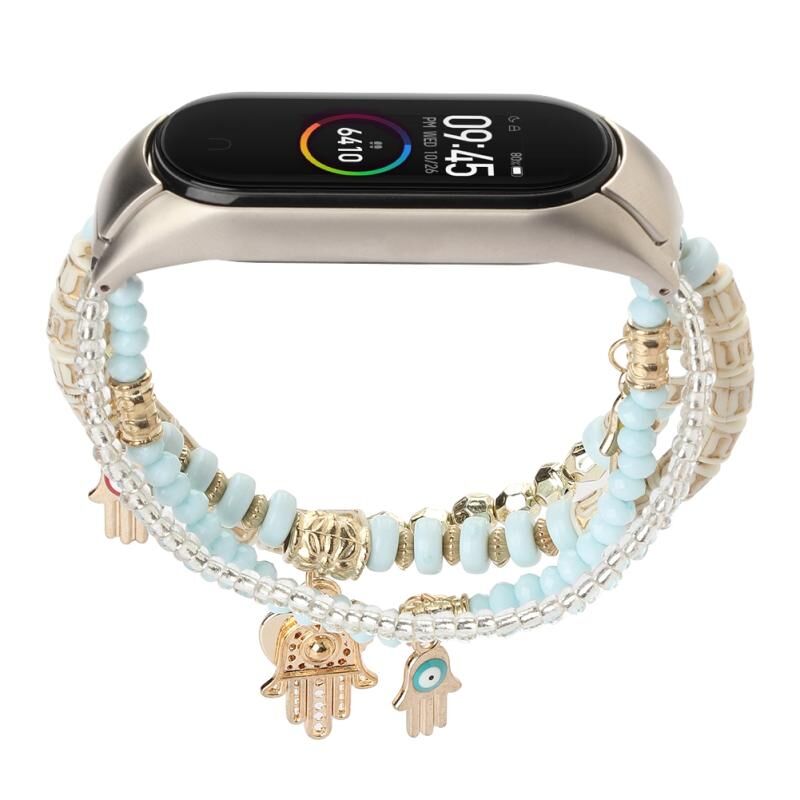 For Xiaomi Mi Band 5 & 6 Mori Style Beaded Bracelet Watch Band(Pink Blue)