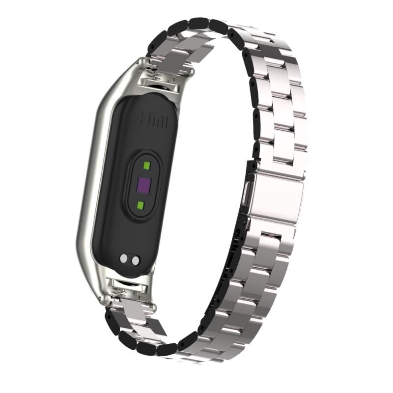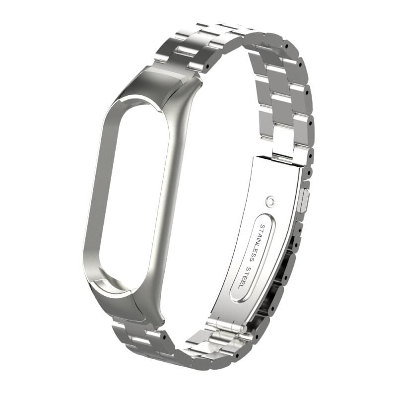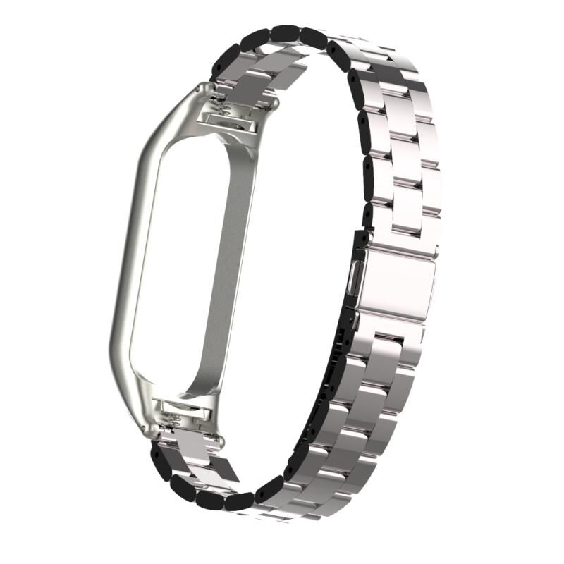 For Xiaomi Mi Band 5 Double Spring Solid Three Stainless Steel Solid Color Watch Band(Silver)