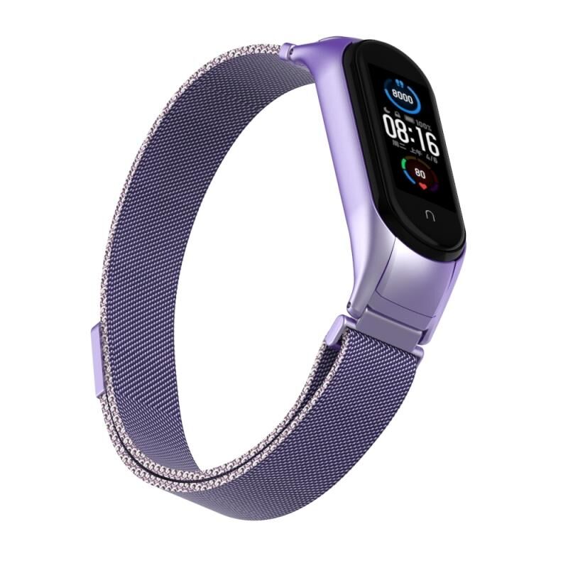 For Xiaomi Mi Band 5 Milano Solid Color Magnetic Stainless Steel Watch Band(Dazzling Purple)