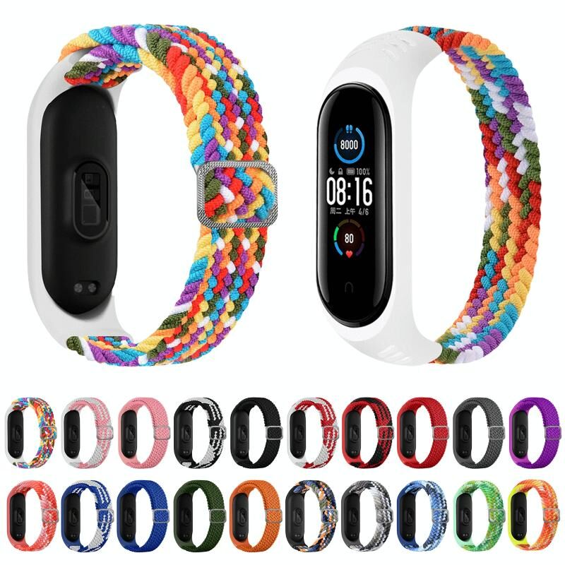 For Xiaomi Mi Band 6 / 5 / 4 / 3 Adjustable Nylon Braided Elasticity Watch Band (Colorful Green)