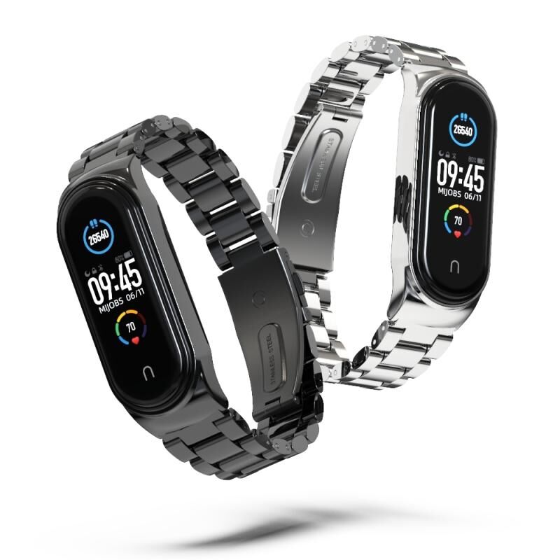 Για Xiaomi Mi Band 6 / 5 / 4 / 3 Mijobs CS Μεταλλικό Μπρατσέλι Τριών Χάντρων από Ανοξείδωτο Ατσάλι (Χρυσό Ρόδι) (MIJOBS)