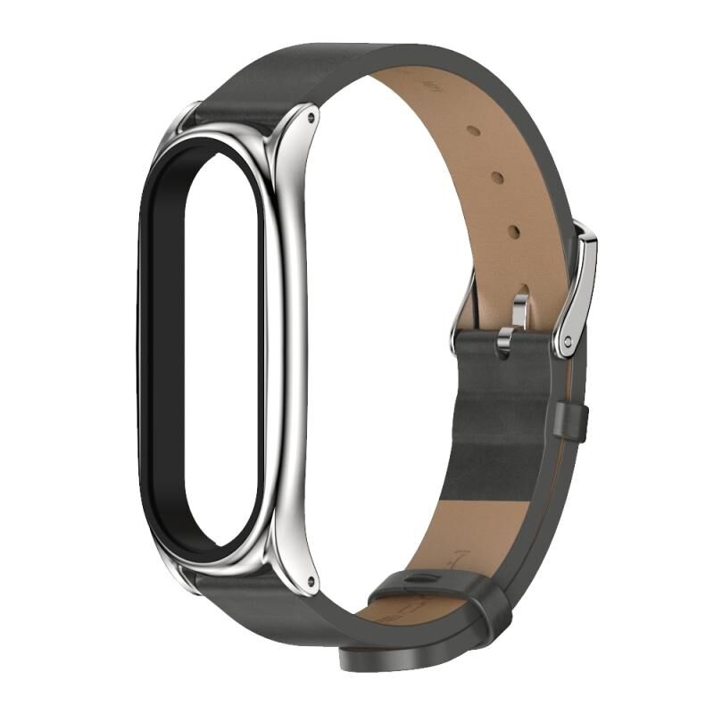 Για Xiaomi Mi Band 6 / 5 / 4 / 3 Mijobs Μεταλλική Θήκη Υφή Crazy Horse PU Μικροΐνες Επιπλέον Λουράκι Ρολογιού (Λευκό Ασημί) (MIJOBS)
