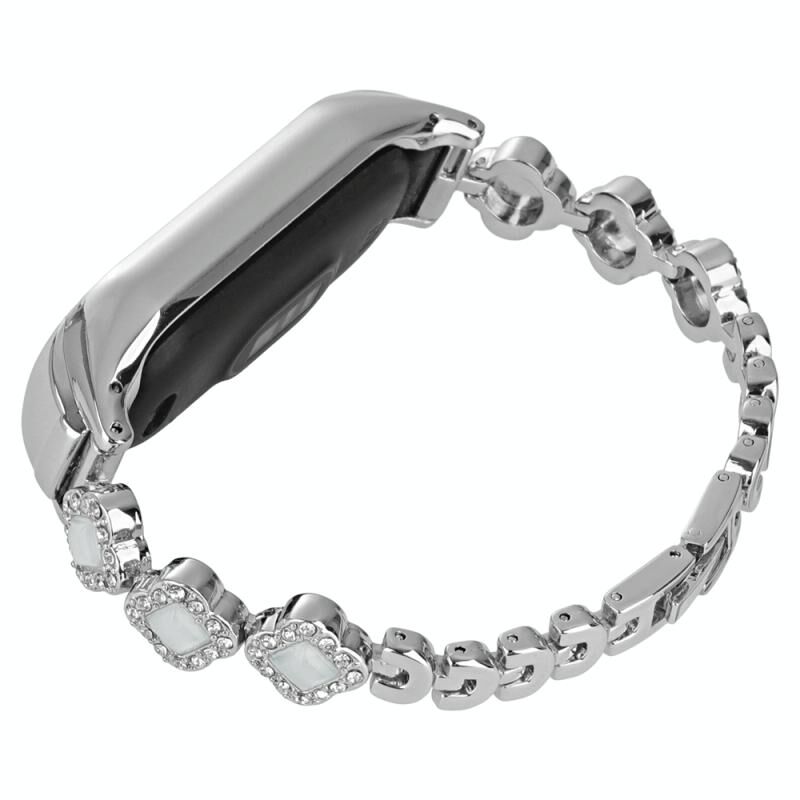 Για το Xiaomi Mi Band 6 / 5 Four-leaf Clover Diamond Metal Watch Band (Ασημί)