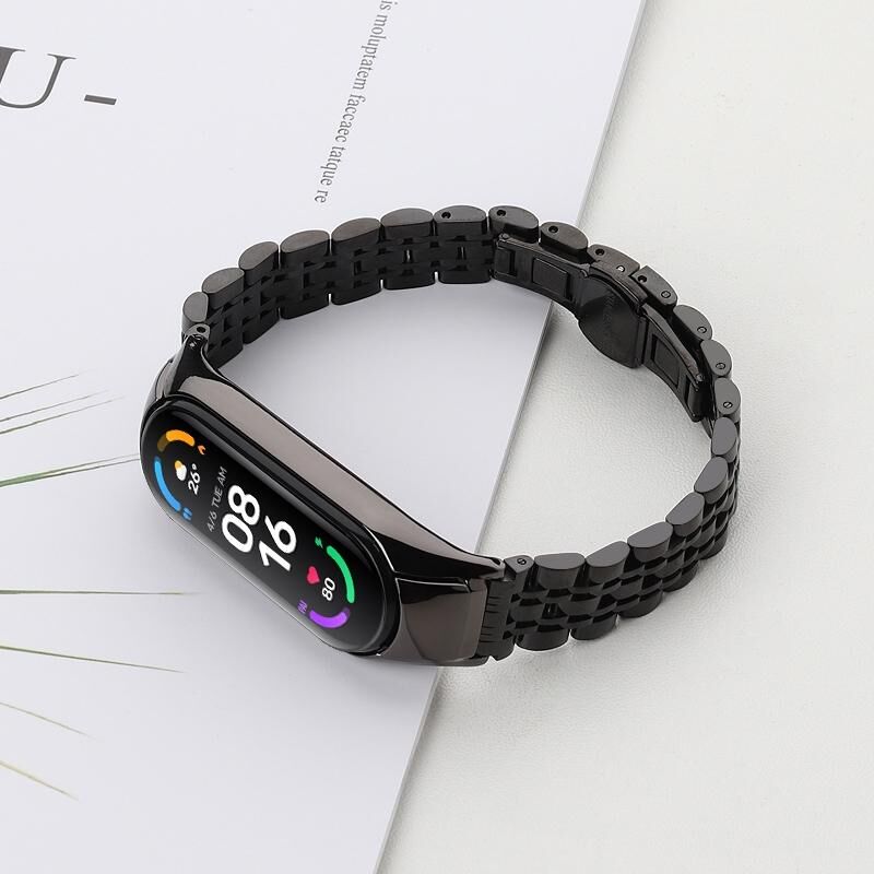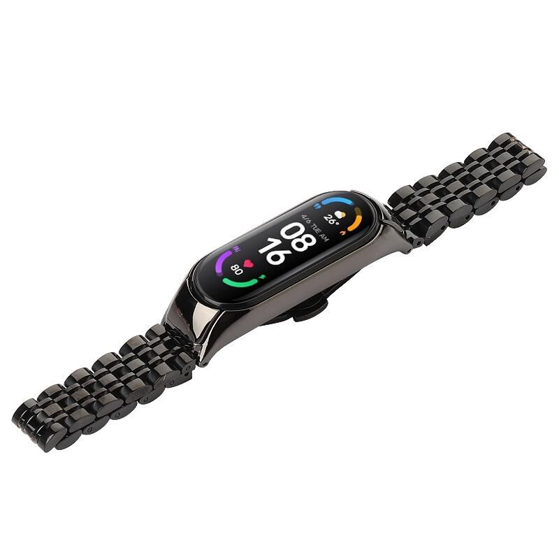 For Xiaomi Mi Band 6 / 5 Seven-beads Stainless Steel Watch Band(Black)