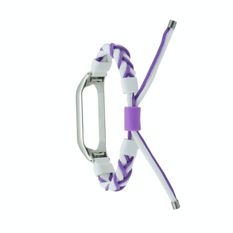 Για Xiaomi Mi Band 6 / 5 σιλικόνης φασόλι πλεγμένο καλώδιο νάιλον ρολόι μπάντα (λευκό μοβ)