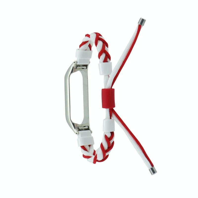 Για Xiaomi Mi Band 6 / 5 σιλικόνης φασόλι πλεγμένο καλώδιο νάιλον ρολόι μπάντα (λευκό κόκκινο)
