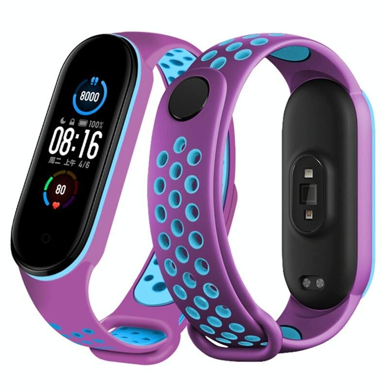 For Xiaomi Mi Band 6 (CA8856) Breathable Silicone Watch Band with Holes(Purple+Blue)