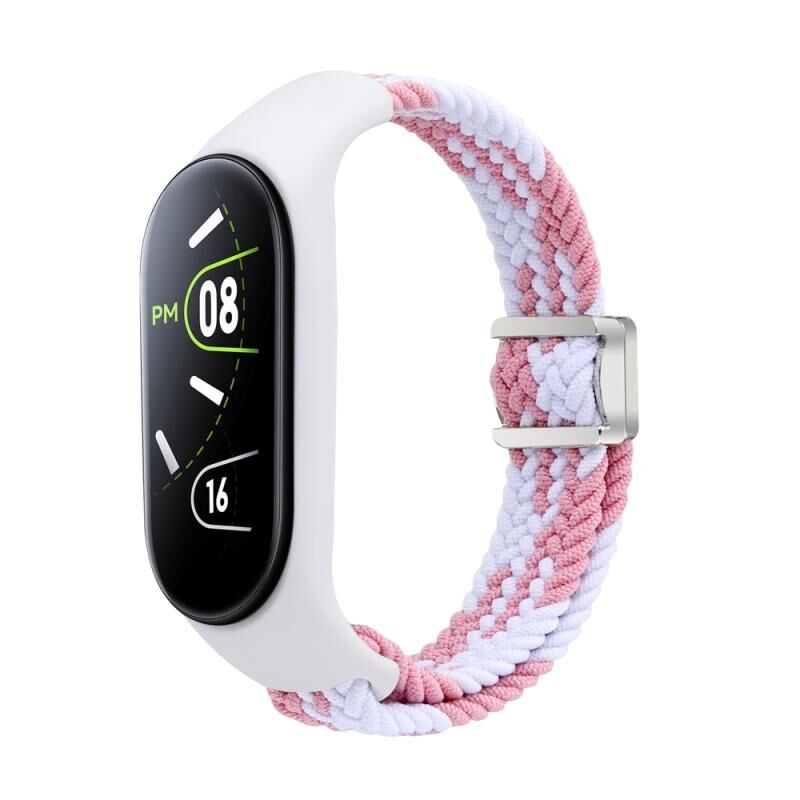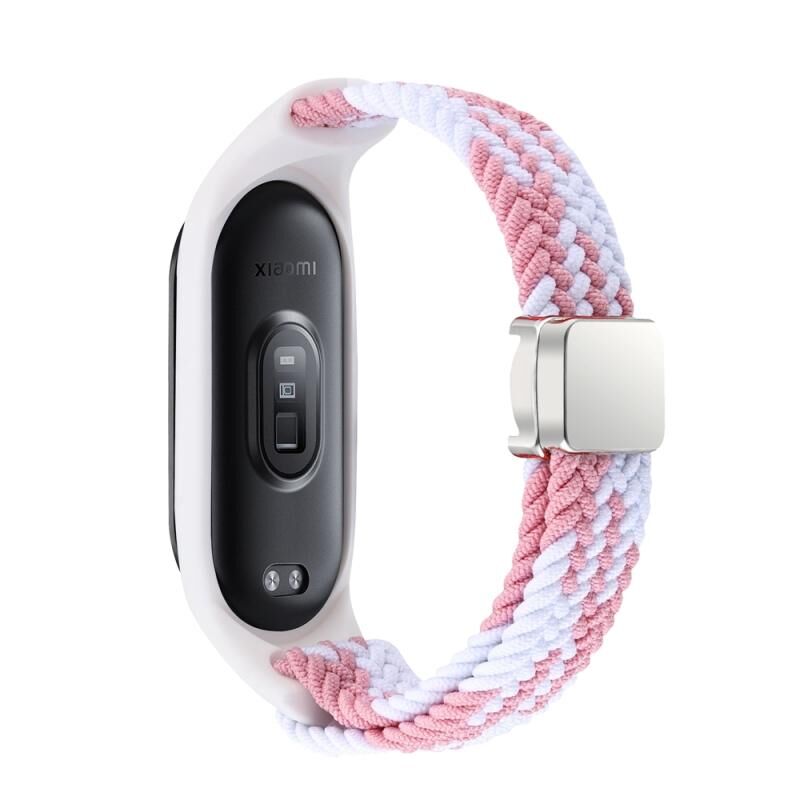 Για Xiaomi Mi Band 7 / 6 / 5 / 4 / 3 Νάυλον πλεκτό βρόχο μαγνητική πόρπη ενσωματωμένη ζώνη ρολογιού (ροζ λευκό)