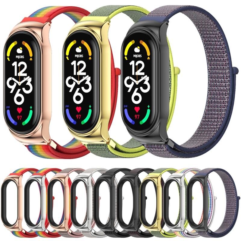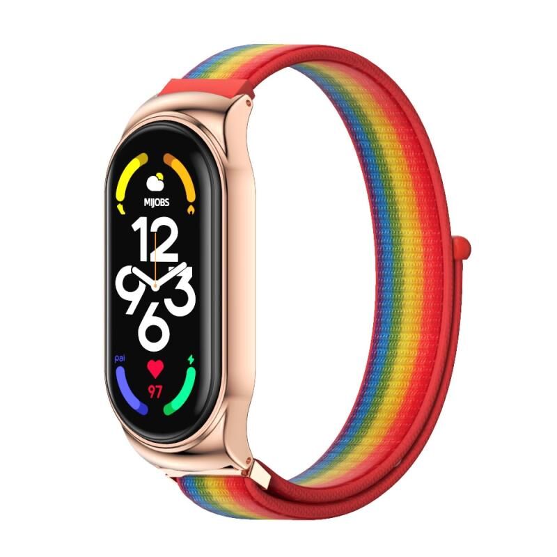 Για Xiaomi Mi Band 7 / 7 NFC MIJOBS CS Θήκη από Ανοξείδωτο Ατσάλι, Λουράκι Ρολογιού από Νάιλον (Rainbow Rose Gold) (MIJOBS)