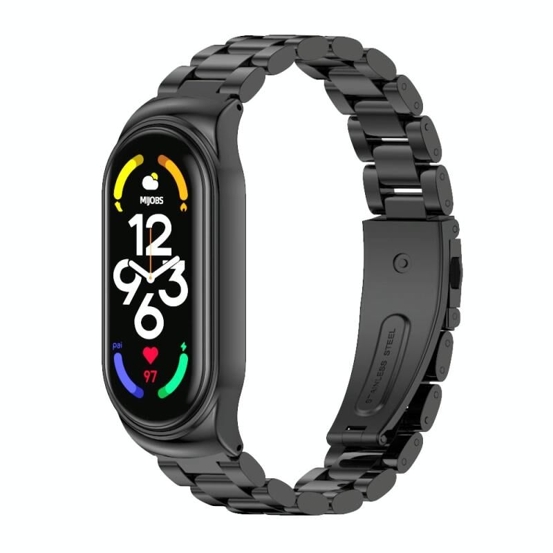 Για το Xiaomi Mi Band 7 / 7 NFC MIJOBS CS Τρεις χάντρες μεταλλική ζώνη ρολογιού από ανοξείδωτο χάλυβα (μαύρο) (MIJOBS)