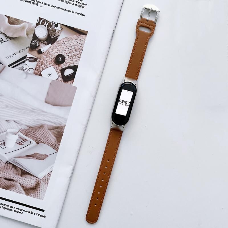 Για Xiaomi Mi Band 7 Δερμάτινο Λουράκι Ρολογιού με 8 Κούμπωμα (Μπλε)