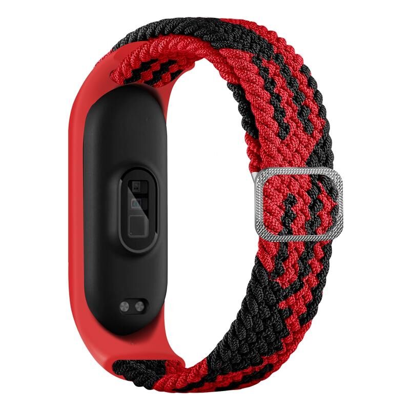 Για Xiaomi Mi Band 7 Ρυθμιζόμενη ζώνη ρολογιού από νάιλον με πλεξούδα ελαστικότητας (κόκκινο μαύρο)