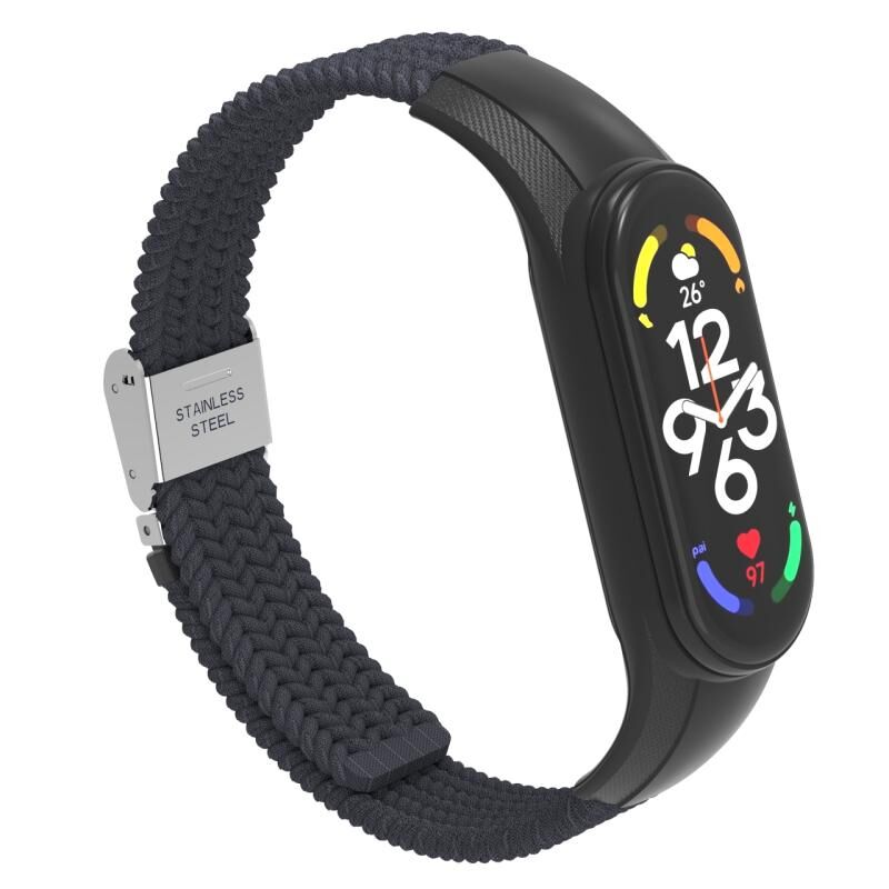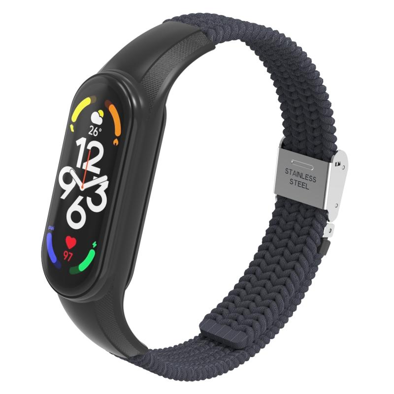 For Xiaomi Mi Band 7 Adjustable Nylon Braided Integrated Watch Band(Charcoal)