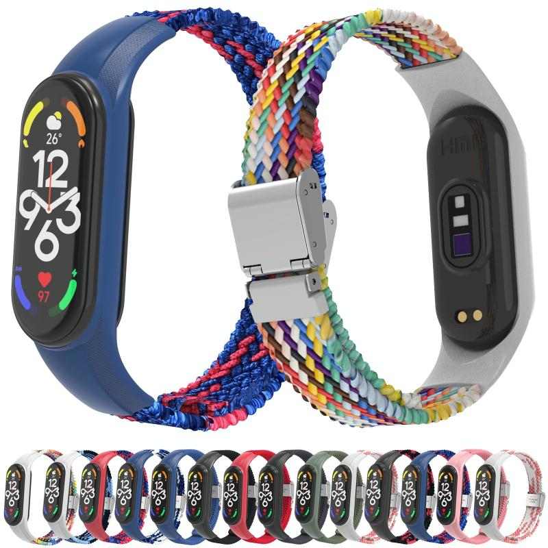 For Xiaomi Mi Band 7 Adjustable Nylon Braided Integrated Watch Band(Cold Blue)