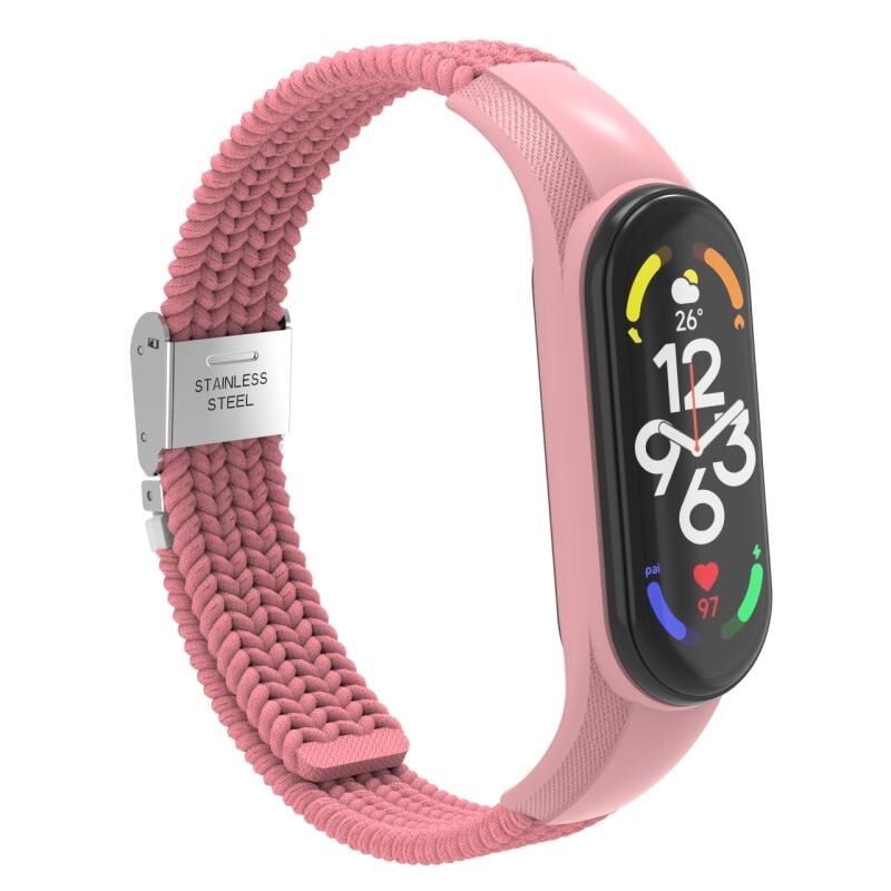 For Xiaomi Mi Band 7 Adjustable Nylon Braided Integrated Watch Band(Pink)