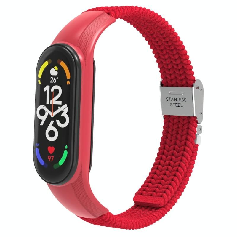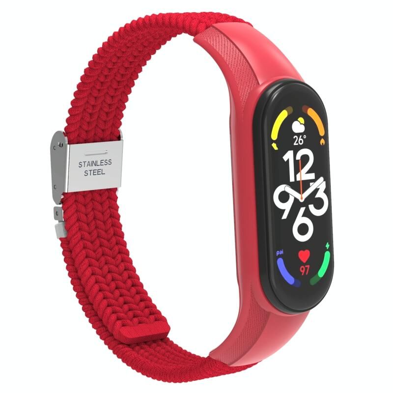 For Xiaomi Mi Band 7 Adjustable Nylon Braided Integrated Watch Band(Red)