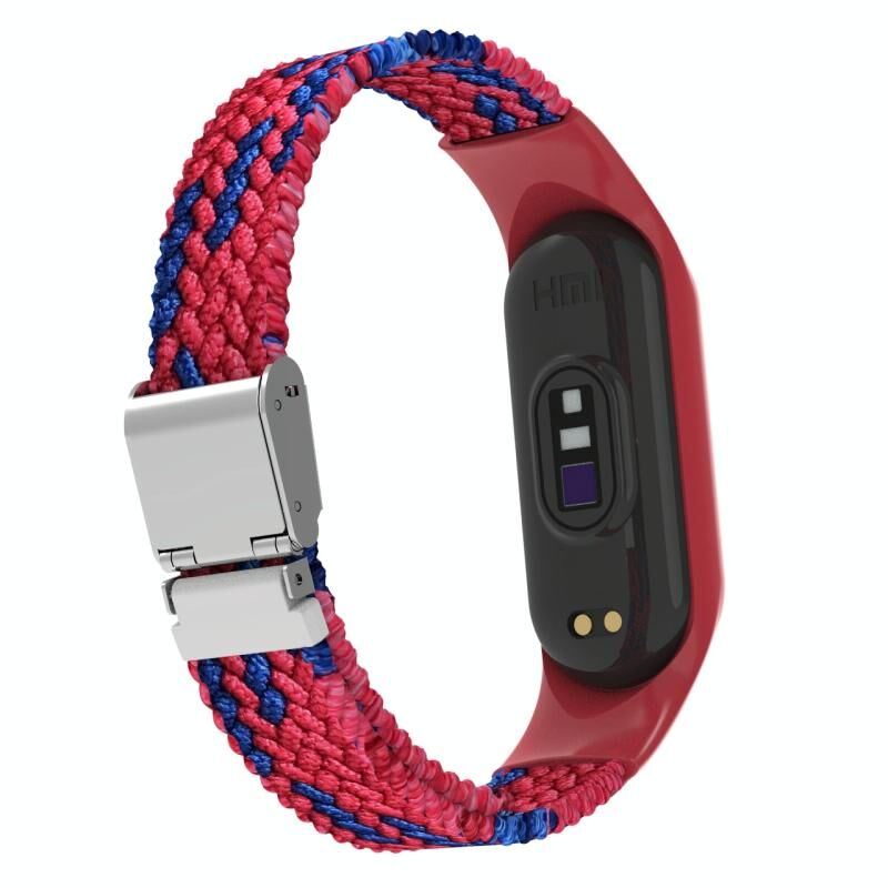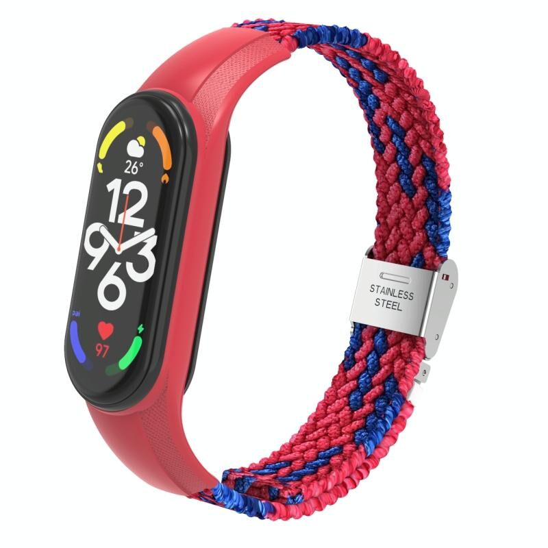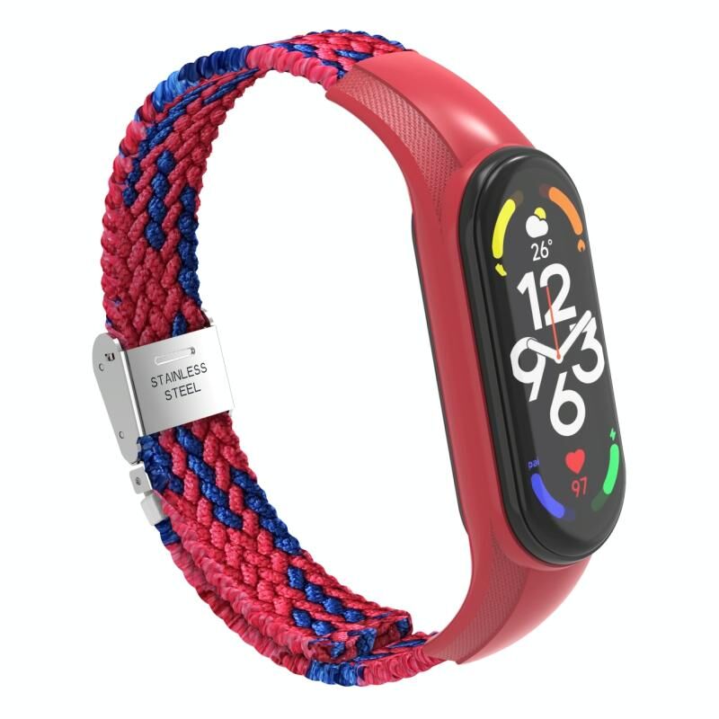 For Xiaomi Mi Band 7 Adjustable Nylon Braided Integrated Watch Band(Red Blue)
