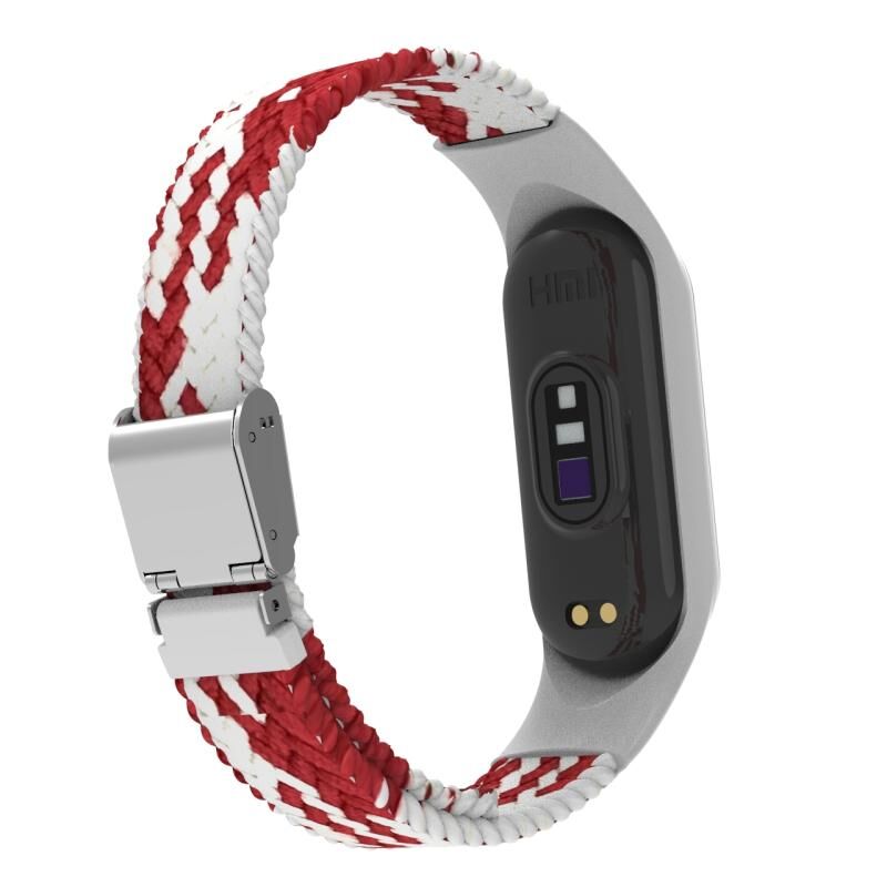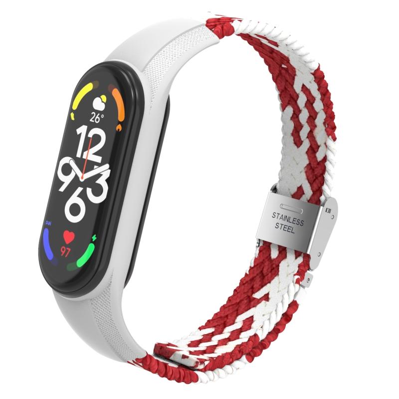 For Xiaomi Mi Band 7 Adjustable Nylon Braided Integrated Watch Band(Red White)