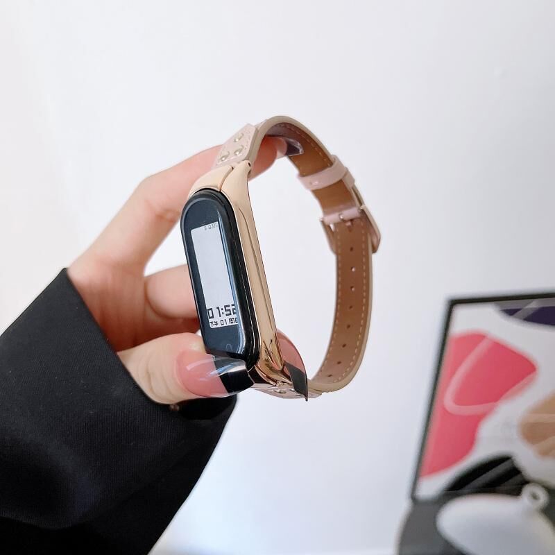 Για Xiaomi Mi Band 7 Ιμάντας Ρολογιού από Γνήσιο Δέρμα με Αγκράφα (Πορτοκαλί)